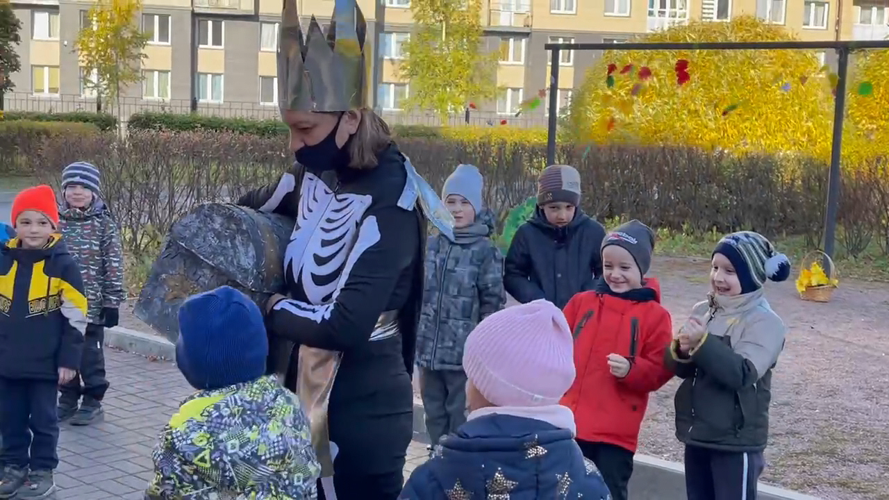 В октябре в нашем саду прошли осенние праздники «Золотая осень». Праздники прошли в формате квеста на улице. Коварный Кощей украл у Осени красочную палитру и заколдовал Осень. Ребята, спасая Осень, активно выполняли задания вместе с Белочкой и Ёжиком: задорно танцевали, исполняли песни и играли. И злые чары Кощея разрушились! Довольные ребята водили хоровод вокруг Осени и получали подарки-спелые, сочные ялоки. Пусть говорят, что осень унылая пора, но дети, как никто другой, способны радоваться шуршанию золотистых опавших листьев под ногами, дождику, под которым так интересно гулять под зонтиком, получая от этого радостные впечатления. Ребята готовились к празднику со своими родителями, изготавливая атрибуты. Осенний праздник в детском саду-один из самых любимых удетей.