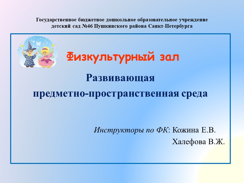 Previous Next Физкультурный зал Занятия ведут инструкторы по физической культуре: Кожина Екатерина Вячеславовна Техмезова Виолетта Жабаровна